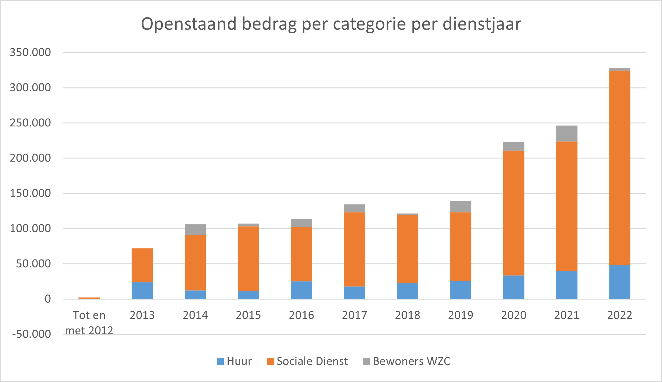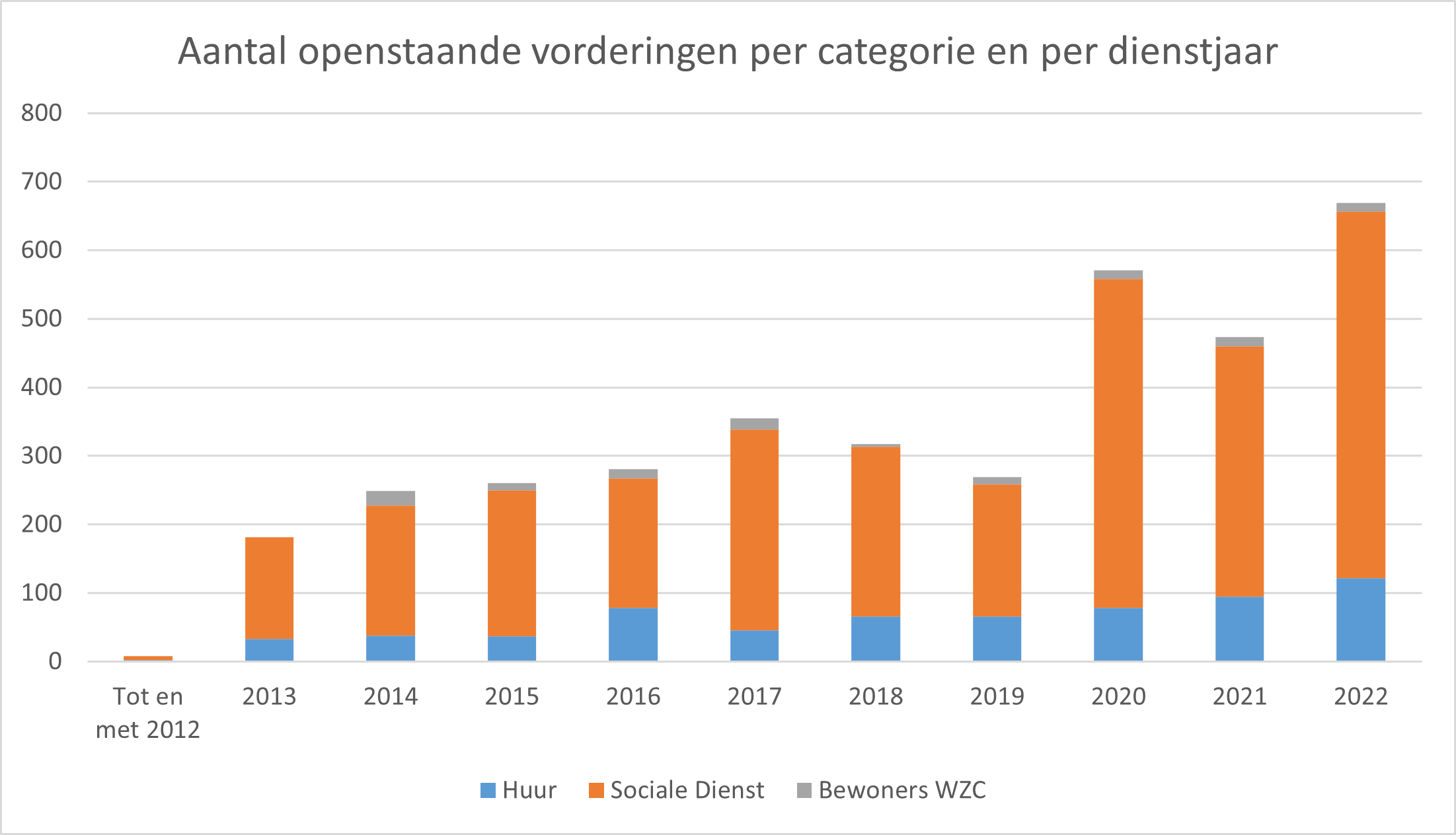- Sociale dienst : alle terugvorderbare voorschotten en vorderingen die ingesteld werden vanuit de sociale dienst