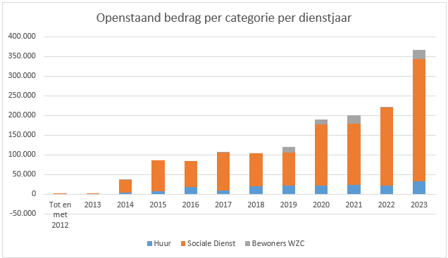 - Sociale dienst : alle terugvorderbare voorschotten en vorderingen die ingesteld werden vanuit de sociale dienst