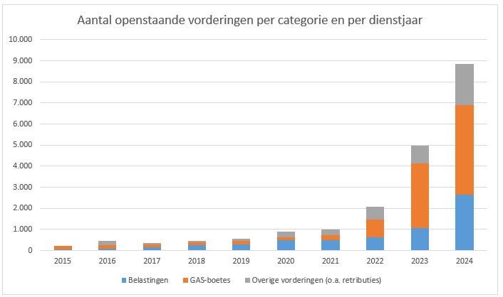 Er zijn een aantal vorderingen waar geen rekening mee wordt gehouden in deze rapportering. Het betreft vorderingen waar geen actief debiteurenbeheer voor nodig is (bv ontvangen subsidies en dotaties hogere overheden, aanvullende belastingen). Deze vorderingen worden dus niet meegenomen in de rapportering omdat deze op geen enkel moment meegenomen worden in de invorderingsprocedure. Uiteraard worden deze vorderingen opgevolgd worden, maar er is geen sprake van een actieve invordering.